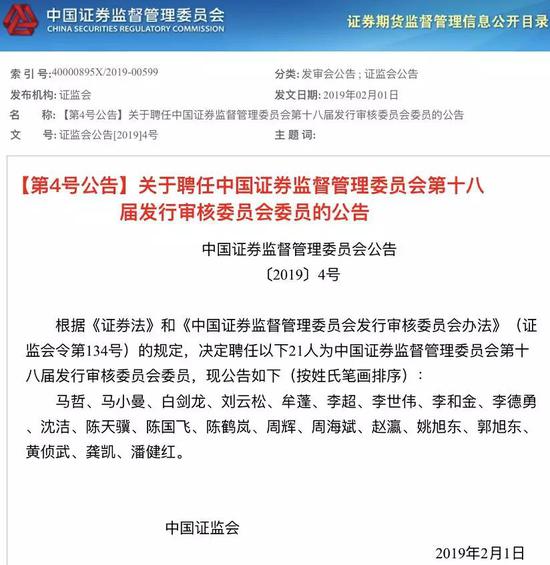 在经过几轮考察公示后,证监会确定了第十八届发行审核委员会委员,共有来自监管机构和律所、会计师事务所的21人,和此前公示人员名单一致。按照惯例,新一届发审委委员将在年后“开工”,超期服役4个月的第十七届发行审核委员会委员终于可以卸任了。
