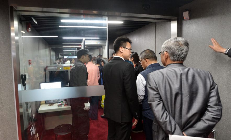 玻璃门,其采用的防弹玻璃可抵挡一切,牛,防弹啊。 过了安检