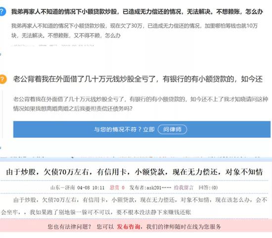 此前牛市时,部分激进的股民也曾玩起杠杆炒股,但结局并不好。记者在部分法律咨询网站上看到,借贷炒股的结果往往是一地鸡毛,难以收场。