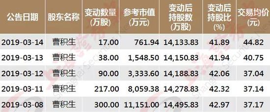 据记者梳理,今年以来,曹积生通过大宗交易进行了5笔减持,减持价格区间在37.14元/股至44.82元/股,累计套现约2.49亿元。