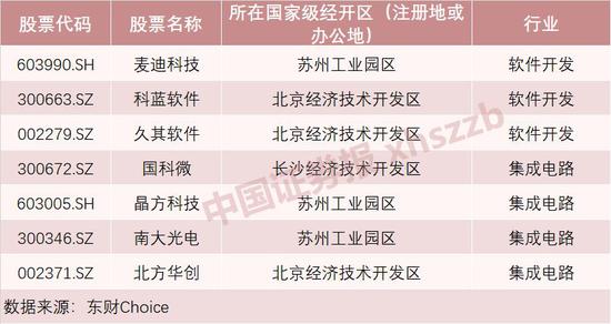 据中证君不完全统计,来自国家级经济技术开发区且行业属于集成电路或软件开发的A股公司有7家
