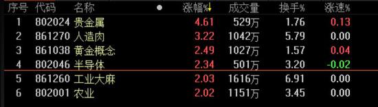 东财choice数据显示,半导体指数(802046)今日盘中一度大涨5.25%,领跑其他板块,最后收涨2.34%。在37只半导体概念股中,有31只收盘为上涨,其中,大港股份和康强电子涨停,北方华创涨停板被打开,最后收涨7.07%。