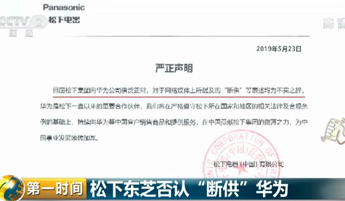 声明称:目前松下集团向华为公司供货正常,对于网络媒体上所提及的“断供”等表述均为不实之辞。