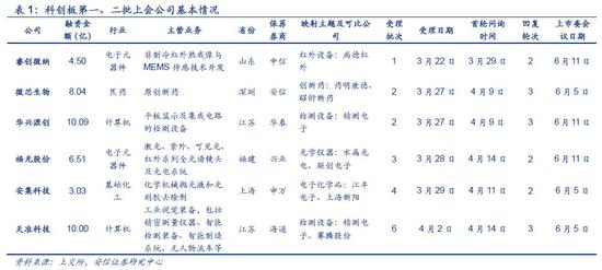 本周一(5月27日)科创板迎来了第一批上会企业,深圳微芯生物科技;安集微电子科技(上海);苏州天准科技这三家公司将于6月5日参加上市委员会审议会议;5月30日,另外3家公司(福建福光、苏州华兴源创科技、烟台睿创微纳技术)公告将于6月11日参加上市委员会审议会议。