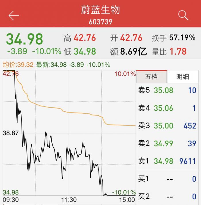 蔚蓝生物(603739)、运达股份(300772)、泉峰汽车(603982)纷纷上演了“天地板”,从涨停到跌停,振幅超过20%。这也就意味着,如果有投资者在早盘几近涨停的位置追高买入这三只个股,那么到下午收盘时,单日亏损幅度就达到了20%。
