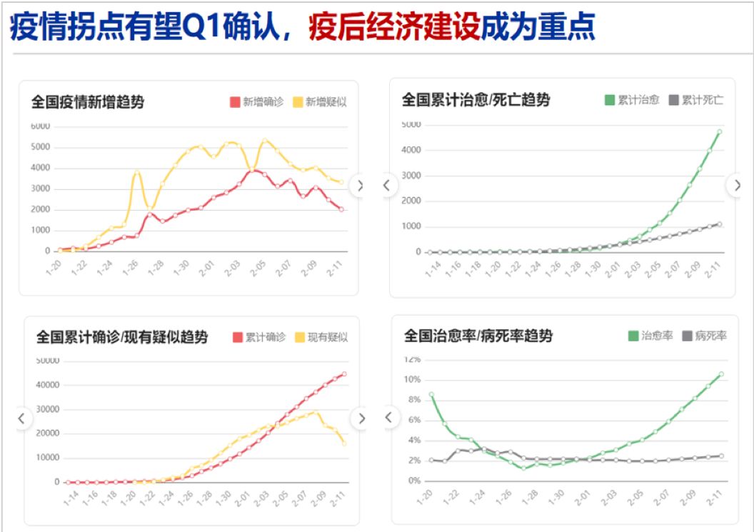2、与过去的非典、禽流感等疫情相比,新冠疫情对经济的影响可能更大。因为近年来国内的第三产业或服务业的占比已经比过去高出很多。不过,由于国家疫情控制的动作迅速,疫情拐点有望在第一季度确认。