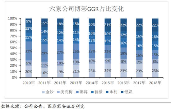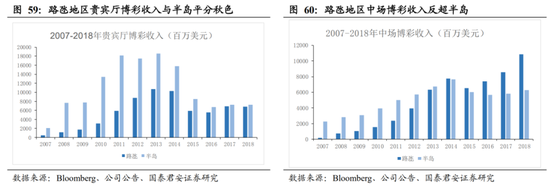 截止2018年底,澳博所有已建成物业全部分布在半岛,半岛营收占比为100%,银娱在半岛和路两地双栖发展, 路物业营收占比超过70%相对来讲,银娱的选址战略更符合澳门整个的发展逻辑,因而能够超越澳博后来居上,充分享受到澳门博彩业发展的红利。