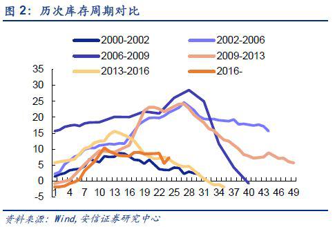 一、经济韧性短期较强,且中期有望迎来补库存周期。始于2016年6月的一轮库存周期已经进入被动去库存阶段,工业企业收入同比企稳,而产成品库存同比下行。考虑到这轮库存周期与2000-2002年(30个月)类似,均是在供给侧改革背景下展开,都呈现偏短偏平特征,可能今年年底本轮库存周期将结束,新一轮补库周期开启。