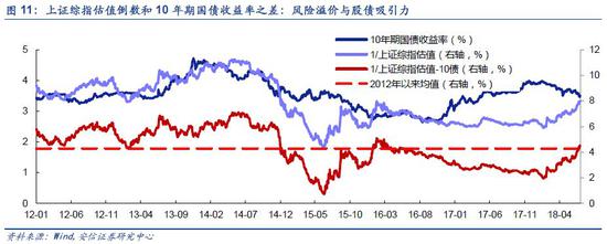 六、从度量风险溢价水平的指标看, A股市场风险偏好已接近16年初时水平, A股相对国债的吸引力也得到了很大修复。从上证综指估值和十年期国债收益率看,A股估值相对国债的吸引力已经显著恢复至12年以来的均值水平,且隐含的风险溢价体现的当前A股市场风险偏好已经接近16年初熔断时水平,短期有望阶段性修复。