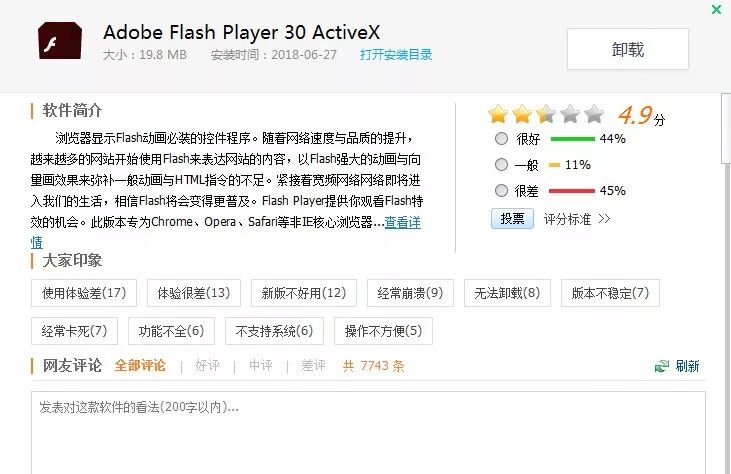 协议如此恶劣,那么用户到底可不可以卸载FlashHelperService服务呢?答案是:不行。电脑如果检测到没有了这个服务,Flash就会停止工作。也就说,你用了中国特供版Flash,那么也必须得使用FlashHelperService服务。