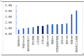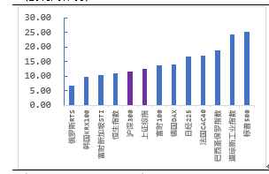 图6: A股指数PE(TTM)国际比较(2018/07/06)