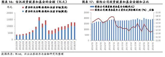截止到2018Q1,信托投资股票和基金余额为12855亿元,占整体资金信托余额的5.96%,2017Q4为5.50%,投资股票和基金的总金额较上季度下降0.6%。