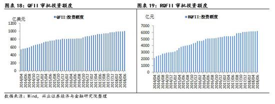截止到2018年6月28日,QFII和RQFII外管局审批额度分别为1004.59亿美元和6220.72亿人民币,QFII与5月30日增加10亿美元,RQFII增加62.2亿人民币。