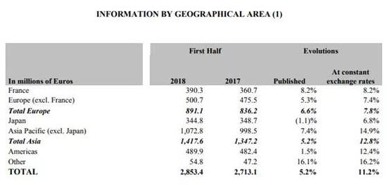 按不变汇率计,所有区域销售额均实现在正增长,日本以外亚太地区保持快速增长,高达14.9%,毫无疑问,中国在其中贡献最大: