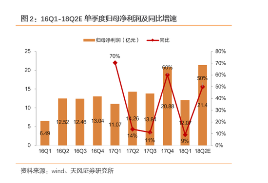 3) 我们预计18H1政府补贴与去年同期基本持平,归母净利润主要靠内生增长驱动。公司18Q2归母净利润21.40亿元,同比增长50.05%,环比增长77.30%,其中我们预计18Q2政府补贴约为3.5亿元,看好公司扣非内生增长超30%。