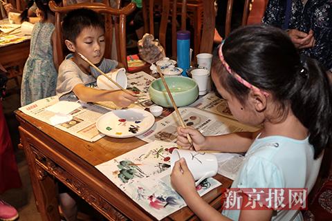 在随后的传统茶具了解活动中,孩子和家长们还进行了陶瓷彩绘,在白色的杯子上绘画出五颜六色的图案,经过烧制,带回家中。