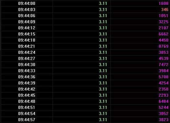 9:44,ST长生原本清淡的盘面突然涌现多笔数千手成交。而在此之前的连续32天跌停过程中,该股的单笔成交量极少超过1000手。