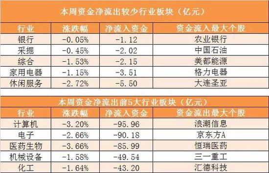 本周计算机行业净流出95.96亿元居首