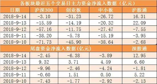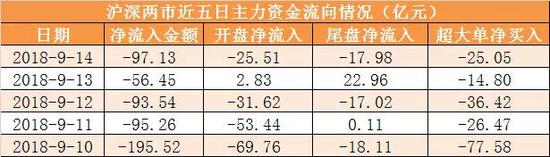 本周两市主力资金累计净流出537.9亿元。其中周五(9月14日)主力资金开盘净流出25.51亿元,尾盘净流出17.98亿元,全天净流出97.13亿元。