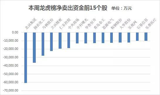 个股龙虎榜净卖出金额居前的15只个股分别为: