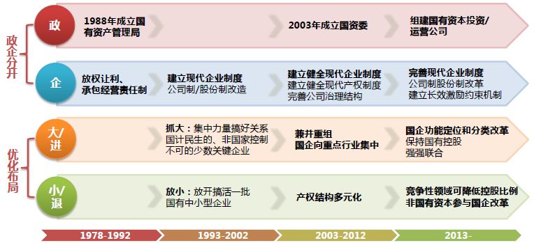 本轮国企改革自2013年提出以来,到2017年底已经完成了1+N的制度体系建设,改革框架已经形成,改革方向已经明确,并通过改革试点探索逐步探索形成了有效的经验。从2018年开始,国企改革开始向纵深区逐步推进,国企改革的成效将会逐步显现。