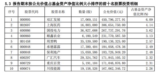可以看出,国投电力和川投能源等能源股退出前十大,复星医药、宁波华翔挤入十大,其中医药股成为重仓板块。