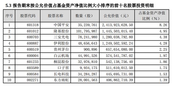 谢治宇的持股变化也不大。平安、茅台、伊利等蓝筹股依然是兴全最爱。