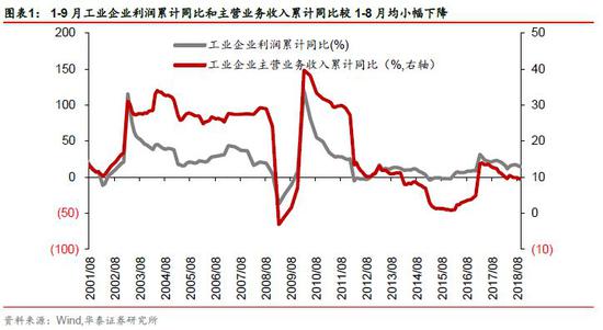 当前A股三季报已经披露完毕,三季报全部A股归母净利同比增长11.15%,其中:主板(非金融)净利增速年内首次回落,创业板(不含温氏股份、乐视网)归母净利增速大幅回落至4.7%,中小板(非金融)回落至8.9%。分行业来看,三季报增速均回落,其中周期板块自中报增速见顶后回落,消费板块回落速度加快、科技回落速度收窄。我们认为,今年下半年以来经济下行压力已经传导至企业盈利端,从库存周期来看,9月工业增加值和产成品库存同比回落显示库存周期主动去库存开启,预计有望在明年中见底。