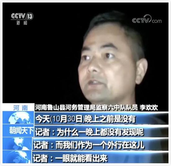 然而现场巡查的鲁山县河务管理局的监察队员却始终称没有发现。