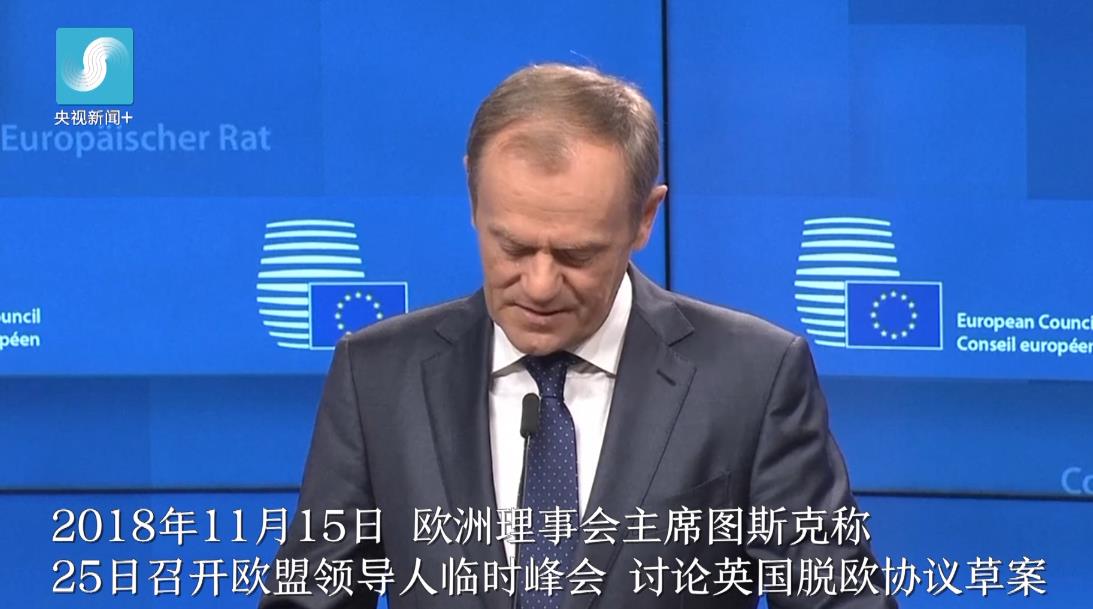 2018年11月15日,欧洲理事会主席图斯克称11月25日召开欧盟领导人临时峰会,讨论英国“脱欧”协议草案。