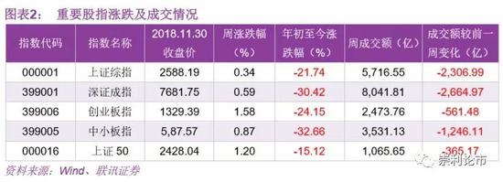 上周(11月26日-11月30日)两市成交金额合计1.38万亿,其中上证成交5716.55亿,深证成交8041.81亿。受G20会议具有不确定性因素影响,上周指数呈现出震荡走势,沪深两市成交量较前一周明显缩小4971.97亿元。