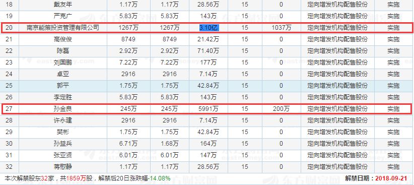 或许,金冠股份复牌后短期拉高股价,是为了方便解禁股出货。2018年9月21日,上市公司共有32名股东限售股解禁,解禁股合计1859万股,占流通股的比例为10.62%。