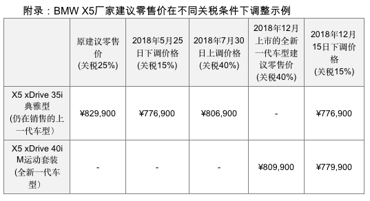在此背景下,宝马(中国)汽车贸易有限公司今天宣布,对在中国大陆市场销售的原产于美国的BMW X5、X6,以及X5M和X6M的厂家建议零售价进行适当调整,新的厂家建议零售价提前于12月15日起开始执行。